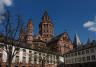 説明:ライン川とマイン川の合流点フランクフルトの近くに位置するマインツは紀元前13年にローマ人が設置した軍事拠点のモゴンティアークムが起源です。ゲルマン人の侵攻によって破壊されたマインツの町はドイツのキリスト教化中心地として再生。746年にはドイツ最初の大司教が任命されその後任者は神聖ローマ帝国7人の選定侯の一人になる。印刷技術を発明したヨハネス・グーテンベルクは1398年にマインツに生まれる。フランス革命の影響で1973年の短期間マインツ共和国が生まれる。